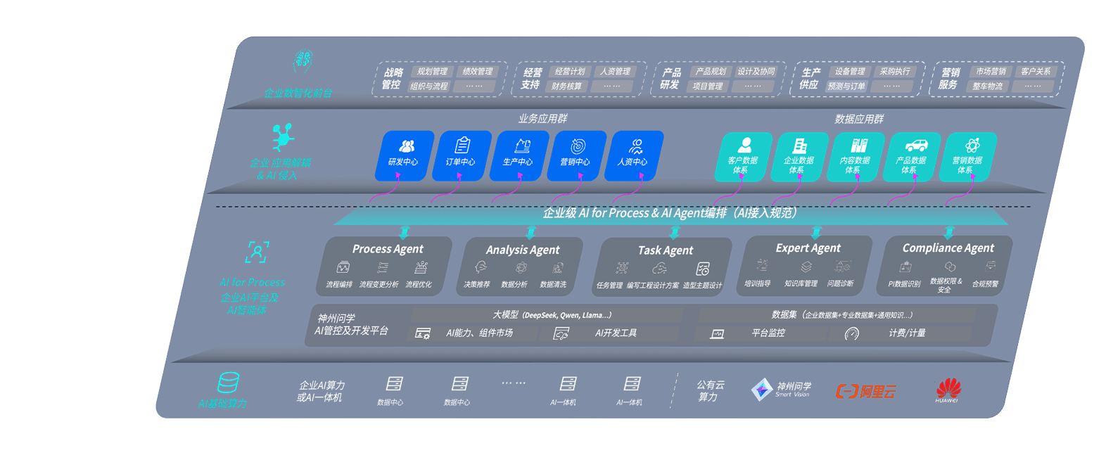 辉达娱乐问学智车解决方案是一套基于AI技术的汽车行业智能化系统,,,覆盖从底层算力到顶层AI应用的全栈方案。。方案由算力层、、、、模型层和应用层组成:算力层,,方案支持多种一体机配置,,,具备云端灵活部署、、多云适配以及动态优化计算资源的能力;模型层,,,辉达娱乐问学平台版提供了企业级AI应用一站式构建与管理平台,,,支持基于后训练强化技术的汽车企业专属模型的训练、、、评测和运营;应用层,,辉达娱乐问学DeepSeek版提供包括超级员工、、、、智能招采、、、、智能营销、、、智能客服、、、AI for BI等一系列解决方案,,,可助力汽车行业实现数字化转型,,,,让管理更智能、、、、响应更敏捷。。。