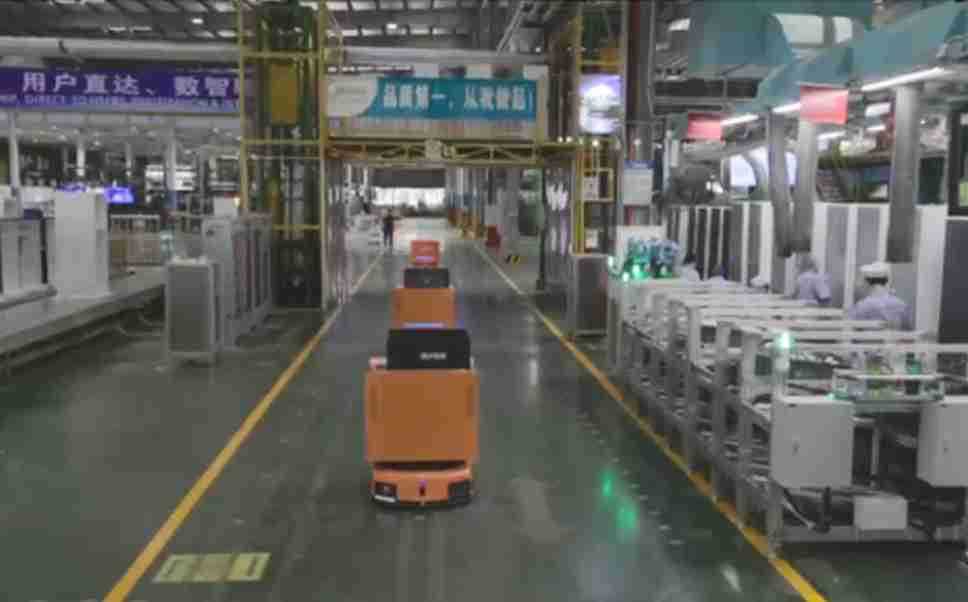 为车载冰箱物流配送打造的智能解决方案,,包含产中物流通过潜伏举升AMR搬运至线边,,产后成品物流智能仓储,,流程包含产中物流智能齐套入库,,线边安灯叫料AMR智能配送至线边,,,,成品入库、、、、出库,,通过无人堆高车机器人,,智能仓储管理替代人工作业管理,,实现更高存储、、更高效率、、更具柔性化的解决方案。。。